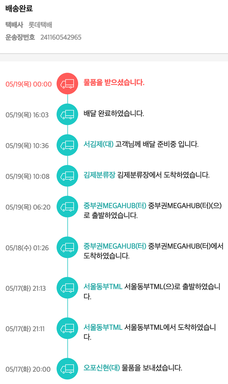 기부자님이 사용한 기부포인트 44,650원, 가격상승분 2,314원, 100원 미만 지원금 90원, 결제 수수료 10,216원, 기타 사업비는 행복나눔재단이 부담했습니다. (기부후기 발송시점에 최종 업데이트 됩니다.) 실제 쇼핑몰에서 확인되는 배송현황을 캡처한 내용입니다. 실시간 자료와는 차이가 있을 수 있습니다.