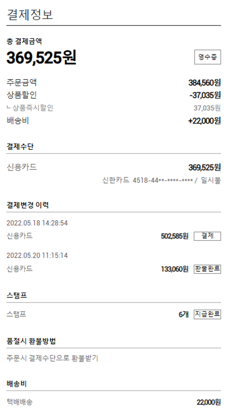 기부자님이 사용한 기부포인트 80,600원, 물품배송비 22,000원, 가격상승분 18,548원, 100원 미만 지원금 37원, 결제 수수료 8,597원, 기타 사업비는 행복나눔재단이 부담했습니다. (기부후기 발송시점에 최종 업데이트 됩니다.) 실제 쇼핑몰에서 확인되는 배송현황을 캡처한 내용입니다. 실시간 자료와는 차이가 있을 수 있습니다.