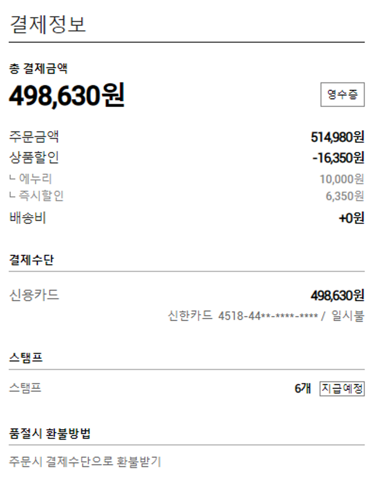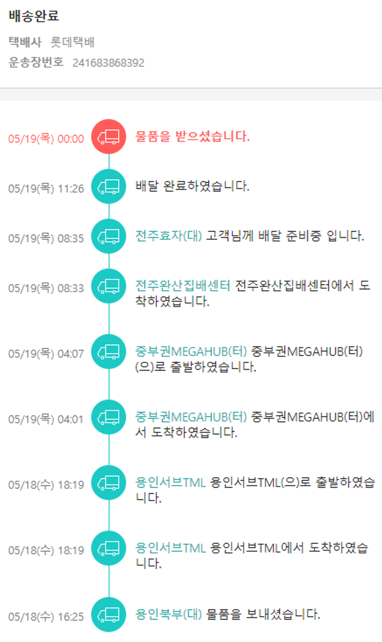기부자님이 사용한 기부포인트 107,550원, 가격상승분 360원, 100원 미만 지원금 70원, 결제 수수료 10,471원, 기타 사업비는 행복나눔재단이 부담했습니다. (기부후기 발송시점에 최종 업데이트 됩니다.) 실제 쇼핑몰에서 확인되는 배송현황을 캡처한 내용입니다. 실시간 자료와는 차이가 있을 수 있습니다.