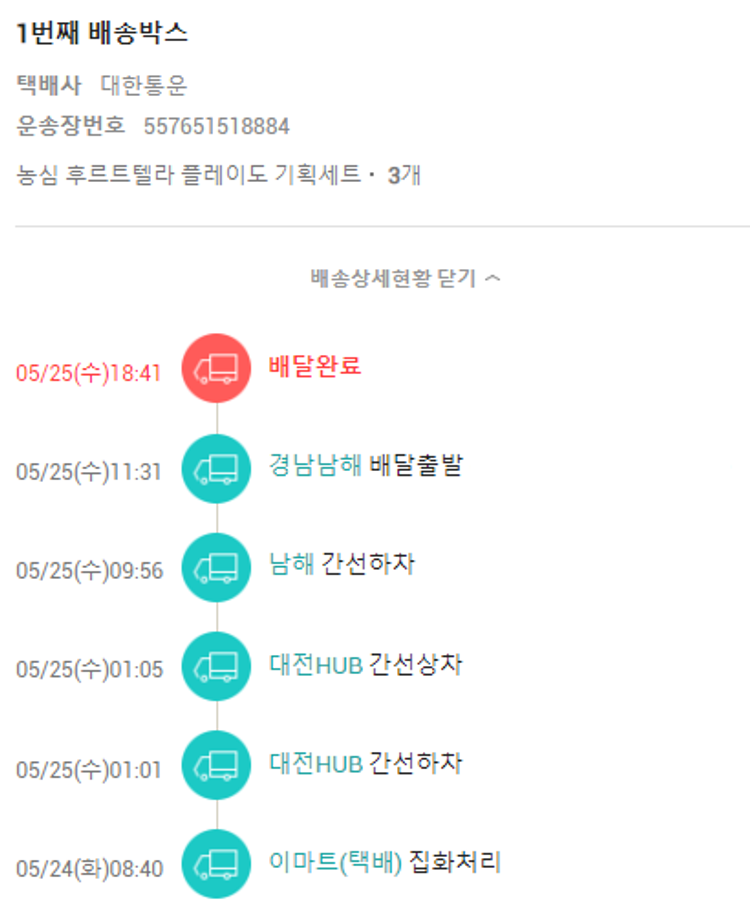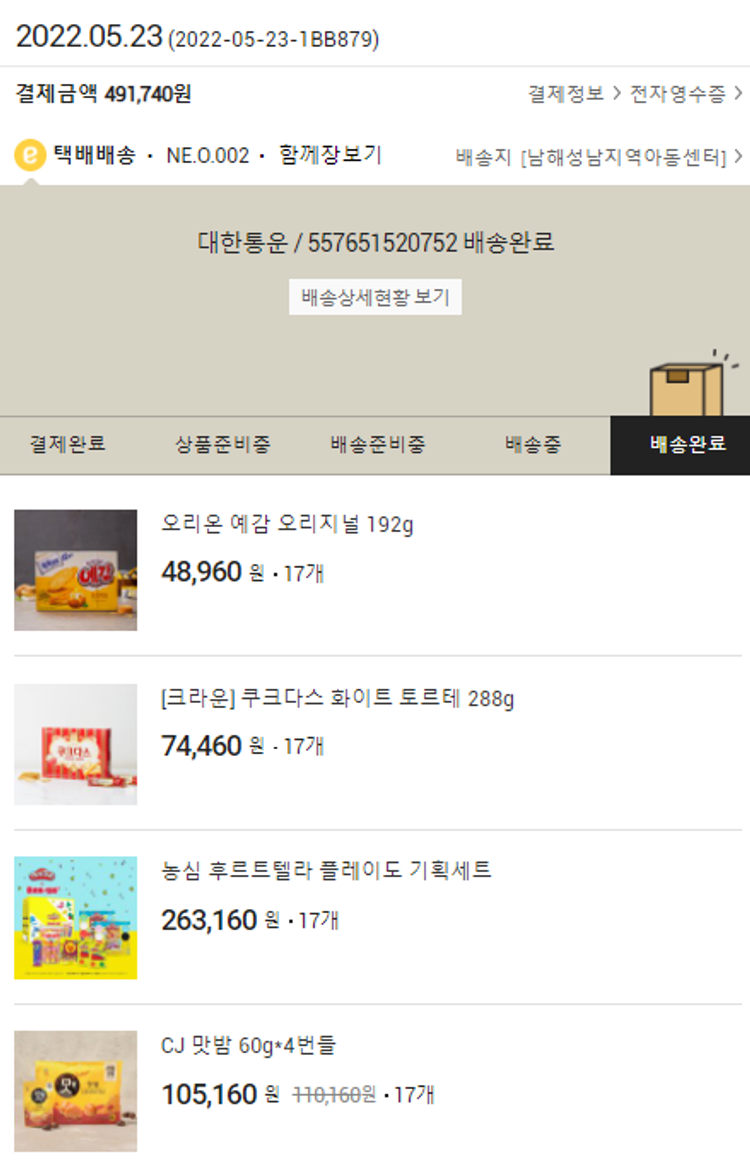 기부자님이 사용한 기부포인트 36,600원, 가격상승분 5,200원, 100원 미만 지원금 40원, 결제 수수료 12,497원, 기타 사업비는 행복나눔재단이 부담했습니다. (기부후기 발송시점에 최종 업데이트 됩니다.) 실제 쇼핑몰에서 확인되는 배송현황을 캡처한 내용입니다. 실시간 자료와는 차이가 있을 수 있습니다.