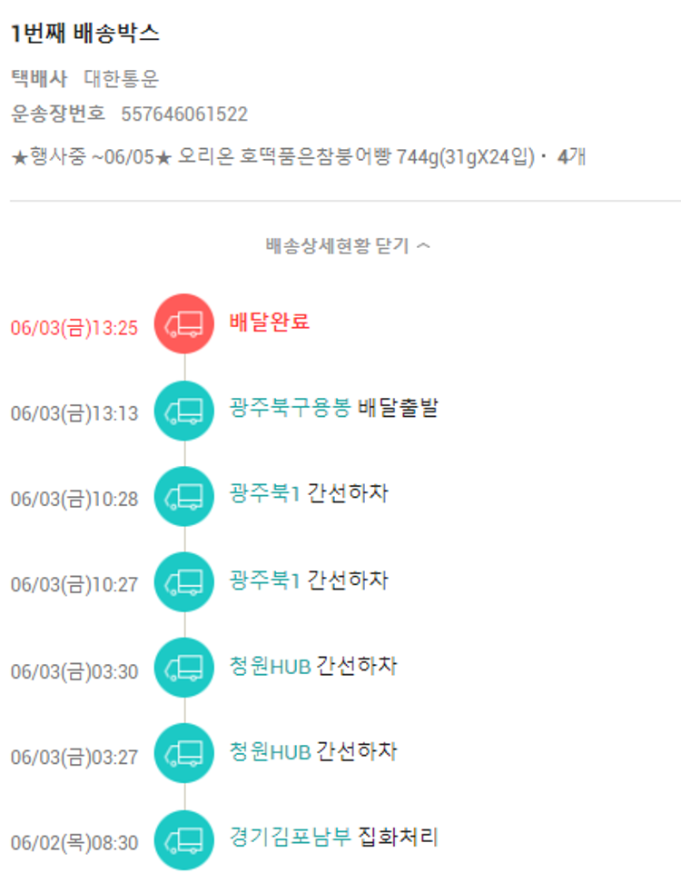 기부자님이 사용한 기부포인트 29,600원, 가격상승분 3,056원, 100원 미만 지원금 44원, 결제 수수료 11,222원, 기타 사업비는 행복나눔재단이 부담했습니다. (기부후기 발송시점에 최종 업데이트 됩니다.) 실제 쇼핑몰에서 확인되는 배송현황을 캡처한 내용입니다. 실시간 자료와는 차이가 있을 수 있습니다.