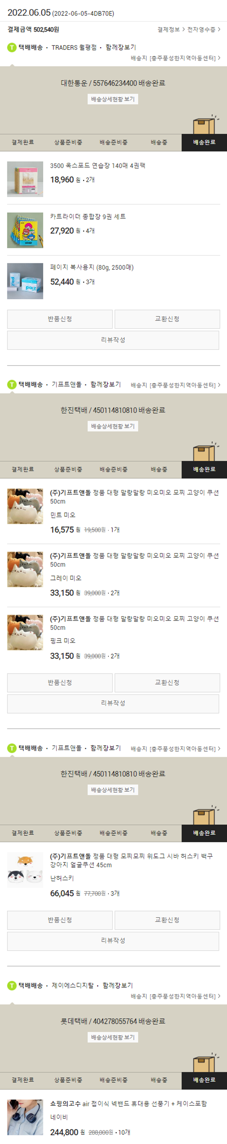 물품배송비 9,500원, 가격상승분 2,560원, 100원 미만 지원금 80원, 결제 수수료 11,784원, 기타 사업비는 행복나눔재단이 부담했습니다. (기부후기 발송시점에 최종 업데이트 됩니다.) 실제 쇼핑몰에서 확인되는 배송현황을 캡처한 내용입니다. 실시간 자료와는 차이가 있을 수 있습니다.