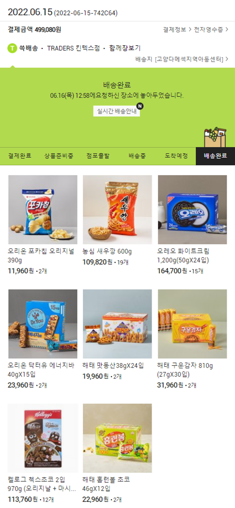 기부자님이 사용한 기부포인트 40,500원, 100원 미만 지원금 80원, 결제 수수료 12,358원, 기타 사업비는 행복나눔재단이 부담했습니다. (기부후기 발송시점에 최종 업데이트 됩니다.) 실제 쇼핑몰에서 확인되는 배송현황을 캡처한 내용입니다. 실시간 자료와는 차이가 있을 수 있습니다.