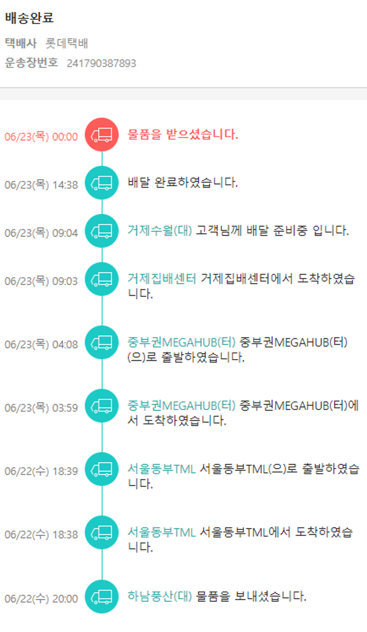 기부자님이 사용한 기부포인트 68,000원, 물품배송비 4,000원, 가격상승분 5,500원, 결제 수수료 10,535원, 기타 사업비는 행복나눔재단이 부담했습니다. (기부후기 발송시점에 최종 업데이트 됩니다.) 실제 쇼핑몰에서 확인되는 배송현황을 캡처한 내용입니다. 실시간 자료와는 차이가 있을 수 있습니다.