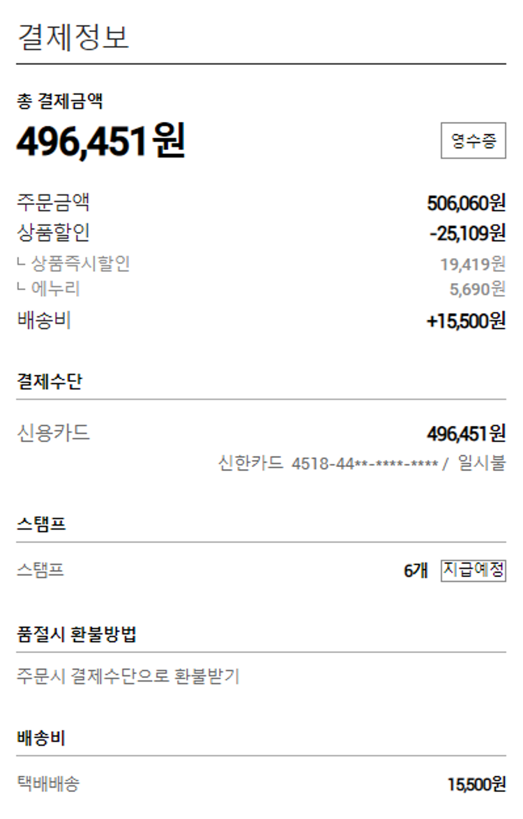 물품배송비 15,500원, 100원 미만 지원금 51원, 결제 수수료 13,712원, 기타 사업비는 행복나눔재단이 부담했습니다. (기부후기 발송시점에 최종 업데이트 됩니다.) 실제 쇼핑몰에서 확인되는 배송현황을 캡처한 내용입니다. 실시간 자료와는 차이가 있을 수 있습니다.