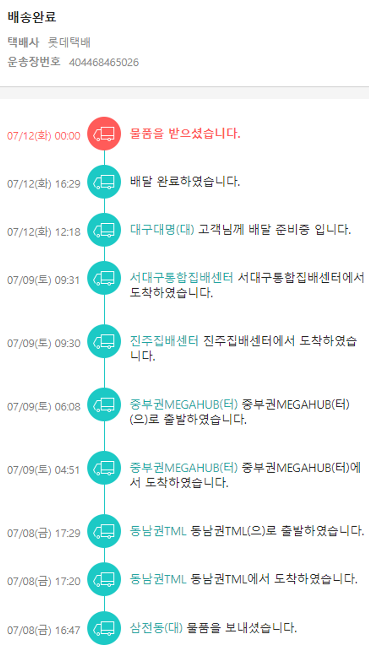 기부자님이 사용한 기부포인트 32,600원, 가격상승분 4,320원, 100원 미만 지원금 67원, 결제 수수료 12,959원, 기타 사업비는 행복나눔재단이 부담했습니다. (기부후기 발송시점에 최종 업데이트 됩니다.) 실제 쇼핑몰에서 확인되는 배송현황을 캡처한 내용입니다. 실시간 자료와는 차이가 있을 수 있습니다.