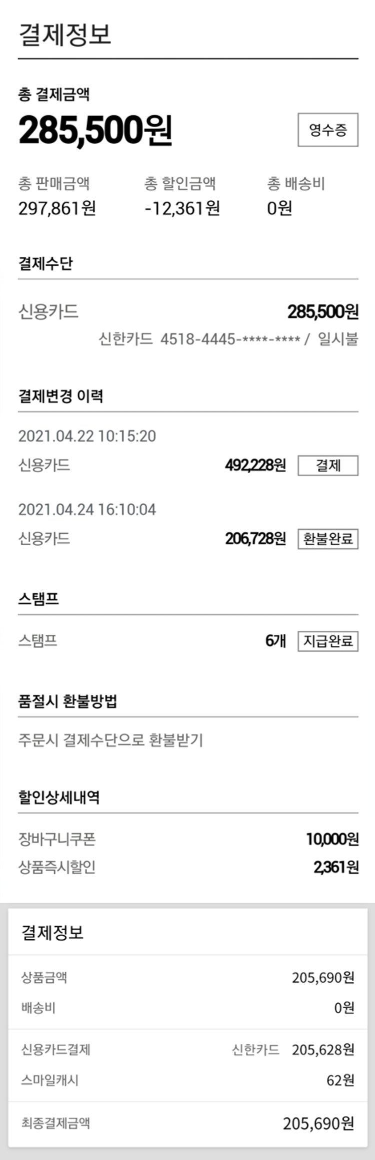 - 기부금 결제: 성명, 휴대전화번호, 아이디(이메일주소), 결제정보 (①신용카드정보(카드주명, 카드사명, 카드번호, 유효기간, 카드주 생년월일), ②카카오페이 결제이력, ③은행계좌정보(예금주명, 은행명, 계좌번호)) - 기부금 영수증발급, 연말정산 간소화 서비스 신청: 성명, 주소, (연말정산간소화 서비스 등록 신청 시) 주민등록번호 |