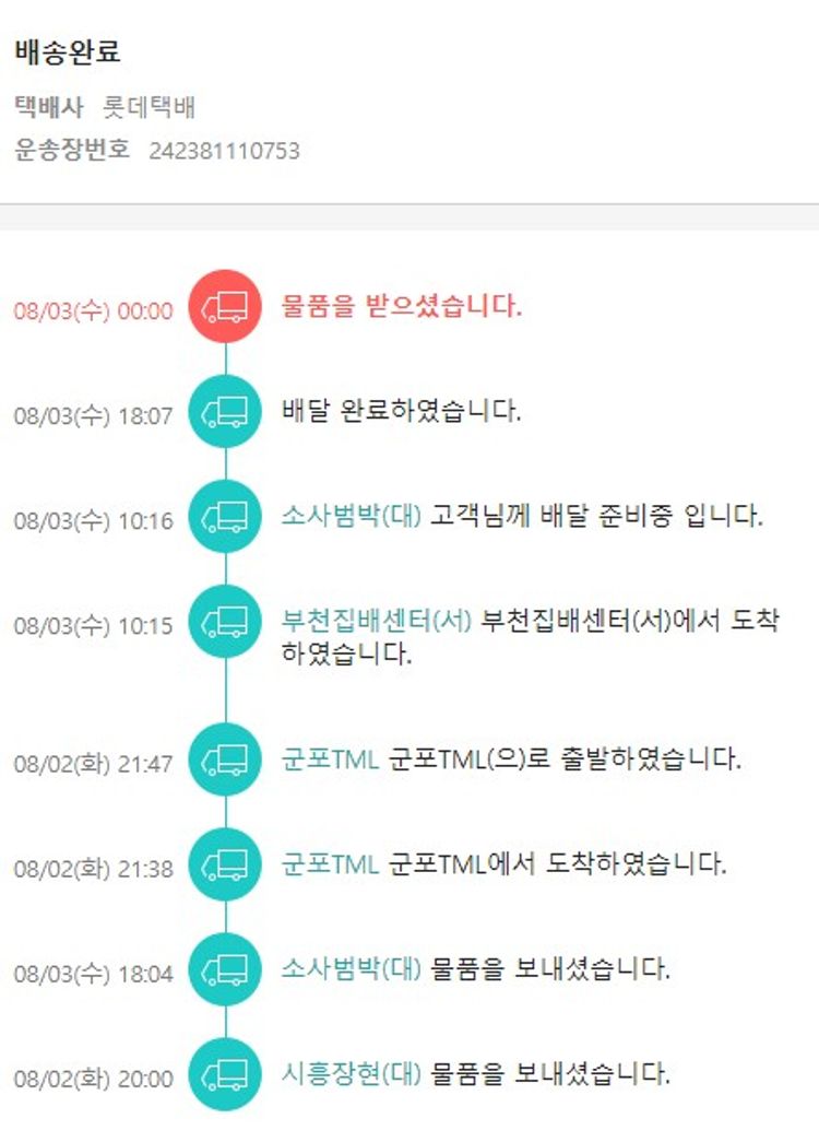 기부자님이 사용한 기부포인트 94,250원, 물품배송비 4,000원, 가격상승분 27,470원, 100원 미만 지원금 30원, 결제 수수료 8,562원, 기타 사업비는 행복나눔재단이 부담했습니다. (기부후기 발송시점에 최종 업데이트 됩니다.) 실제 쇼핑몰에서 확인되는 배송현황을 캡처한 내용입니다. 실시간 자료와는 차이가 있을 수 있습니다.
