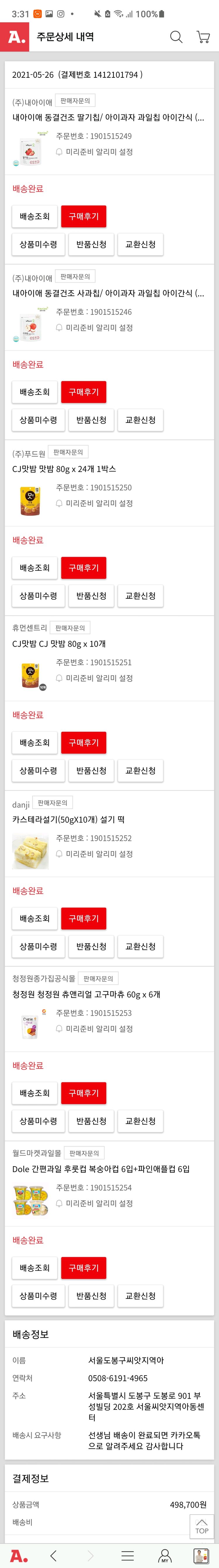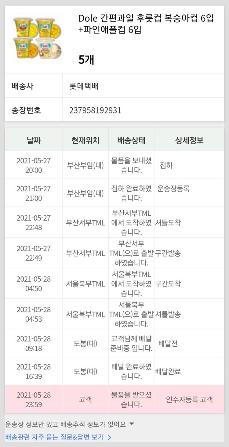 기부자님이 사용한 기부포인트 66,050원, 결제 수수료 12,042원, 기타 사업비는 행복나눔재단이 부담했습니다. (기부후기 발송시점에 최종 업데이트 됩니다.) 실제 쇼핑몰에서 확인되는 배송현황을 캡처한 내용입니다. 실시간 자료와는 차이가 있을 수 있습니다.