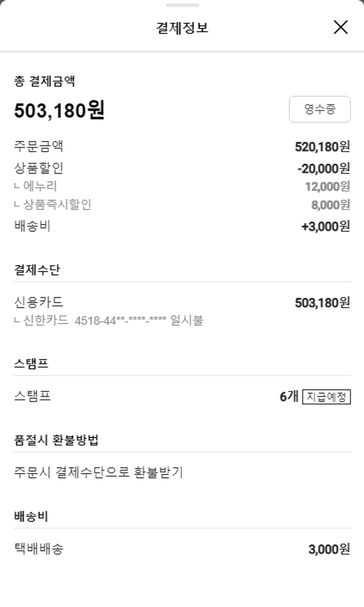 기부자님이 사용한 기부포인트 1,000원, 물품배송비 3,000원, 가격상승분 2,640원, 100원 미만 지원금 40원, 결제 수수료 11,273원, 기타 사업비는 행복나눔재단이 부담했습니다. (기부후기 발송시점에 최종 업데이트 됩니다.) 실제 쇼핑몰에서 확인되는 배송현황을 캡처한 내용입니다. 실시간 자료와는 차이가 있을 수 있습니다.