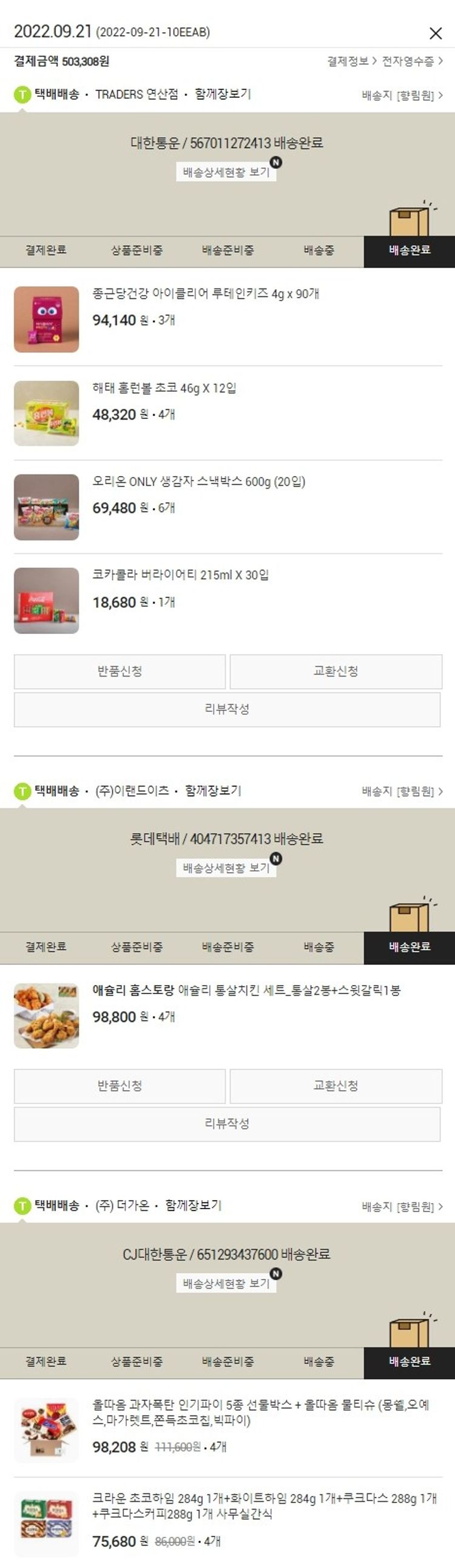 가격상승분 4,600원, 100원 미만 지원금 8원, 결제 수수료 9,325원, 기타 사업비는 행복나눔재단이 부담했습니다. (기부후기 발송시점에 최종 업데이트 됩니다.) 실제 쇼핑몰에서 확인되는 배송현황을 캡처한 내용입니다. 실시간 자료와는 차이가 있을 수 있습니다.