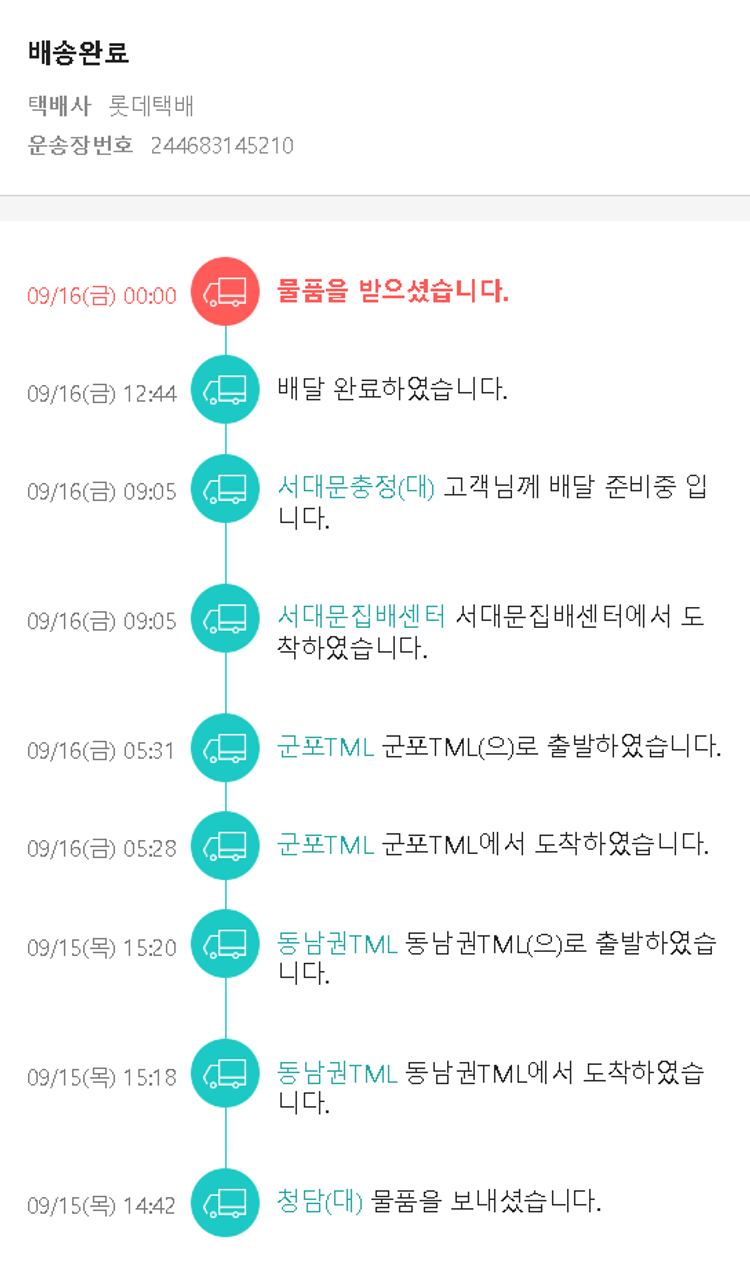 기부자님이 사용한 기부포인트 31,000원, 가격상승분 155원, 100원 미만 지원금 35원, 결제 수수료 12,245원, 기타 사업비는 행복나눔재단이 부담했습니다. (기부후기 발송시점에 최종 업데이트 됩니다.) 실제 쇼핑몰에서 확인되는 배송현황을 캡처한 내용입니다. 실시간 자료와는 차이가 있을 수 있습니다.