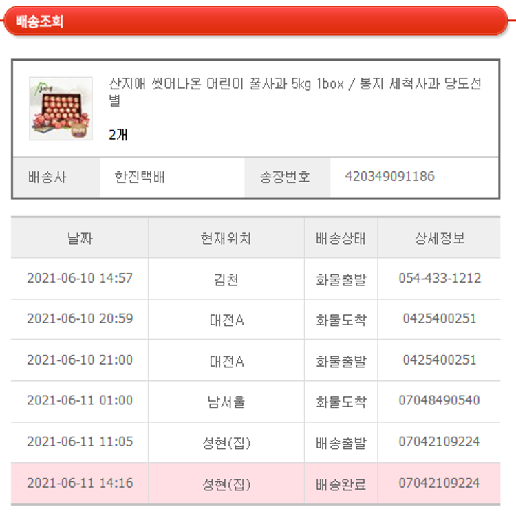 기부자님이 사용한 기부포인트 39,500원, 100원 미만 지원금 40원, 결제 수수료 11,725원, 기타 사업비는 행복나눔재단이 부담했습니다. (기부후기 발송시점에 최종 업데이트 됩니다.) 실제 쇼핑몰에서 확인되는 배송현황을 캡처한 내용입니다. 실시간 자료와는 차이가 있을 수 있습니다.