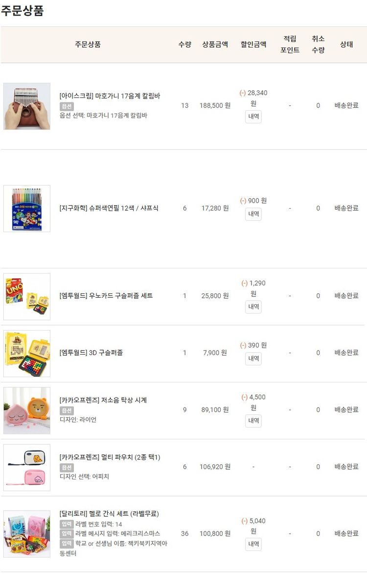 기부자님이 사용한 기부포인트 33,100원, 물품배송비 3,000원, 100원 미만 지원금 40원, 결제 수수료 12,836원, 기타 사업비는 행복나눔재단이 부담했습니다. (기부후기 발송시점에 최종 업데이트 됩니다.) 실제 쇼핑몰에서 확인되는 배송현황을 캡처한 내용입니다. 실시간 자료와는 차이가 있을 수 있습니다.