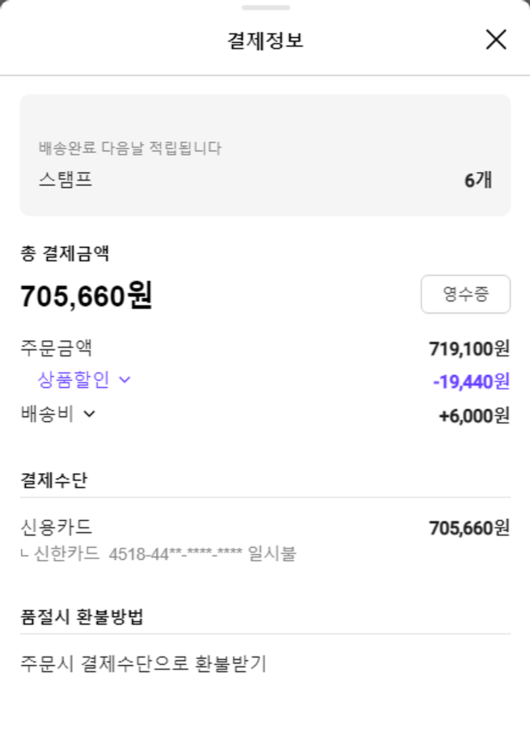 기부자님이 사용한 기부포인트 5,000원, 물품배송비 6,000원, 가격상승분 140원, 100원 미만 지원금 20원, 결제 수수료 19,711원, 기타 사업비는 행복나눔재단이 부담했습니다. (기부후기 발송시점에 최종 업데이트 됩니다.) 실제 쇼핑몰에서 확인되는 배송현황을 캡처한 내용입니다. 실시간 자료와는 차이가 있을 수 있습니다.