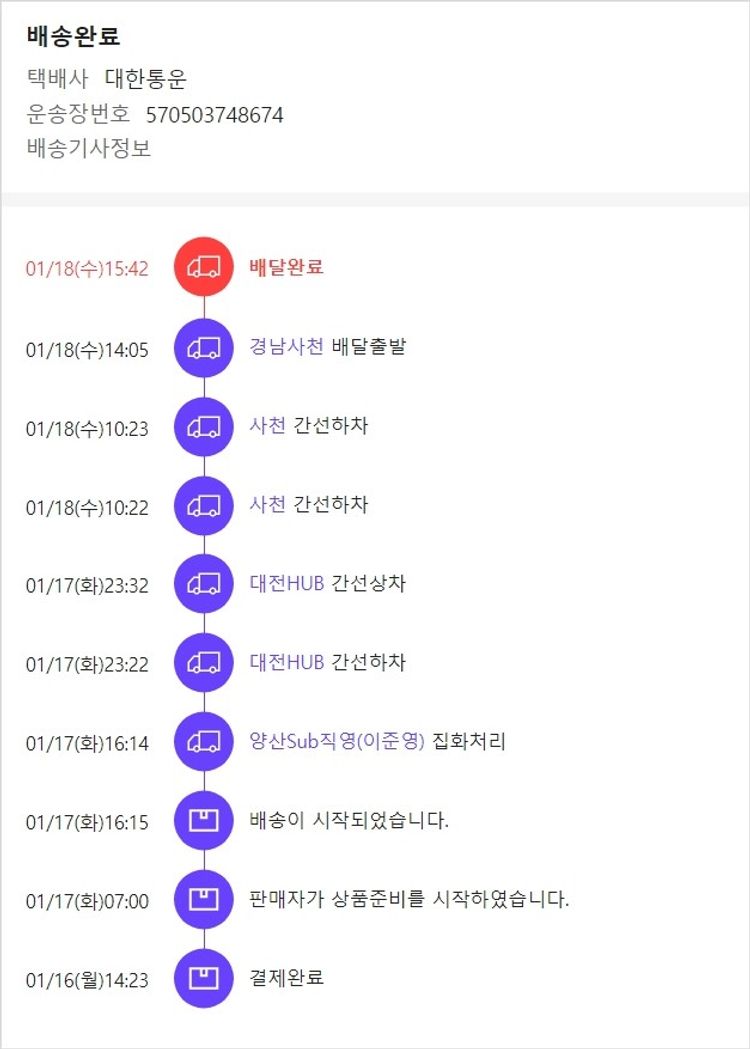 기부자님이 사용한 기부포인트 4,100원, 가격상승분 2,500원, 결제 수수료 24,533원, 기타 사업비는 행복나눔재단이 부담했습니다. (기부후기 발송시점에 최종 업데이트 됩니다.) 주문 후 품절건이 발생하여 2023.01.16. 유사 및 대체상품으로 재주문하였습니다. 실제 쇼핑몰에서 확인되는 배송현황을 캡처한 내용입니다. 실시간 자료와는 차이가 있을 수 있습니다.