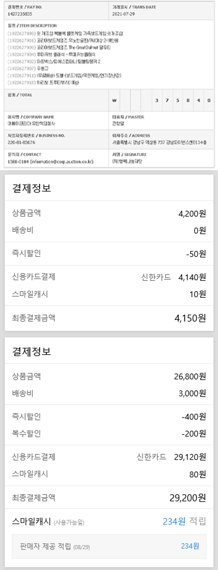 - 기부금 결제: 성명, 휴대전화번호, 아이디(이메일주소), 결제정보 (①신용카드정보(카드주명, 카드사명, 카드번호, 유효기간, 카드주 생년월일), ②카카오페이 결제이력, ③은행계좌정보(예금주명, 은행명, 계좌번호)) - 기부금 영수증발급, 연말정산 간소화 서비스 신청: 성명, 주소, (연말정산간소화 서비스 등록 신청 시) 주민등록번호 |