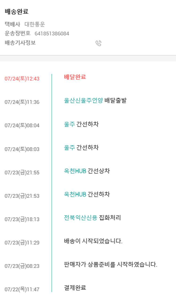 기부자님이 사용한 기부포인트 41,500원, 가격상승분 124원, 100원 미만 지원금 16원, 결제 수수료 11,571원, 기타 사업비는 행복나눔재단이 부담했습니다. (기부후기 발송시점에 최종 업데이트 됩니다.) 실제 쇼핑몰에서 확인되는 배송현황을 캡처한 내용입니다. 실시간 자료와는 차이가 있을 수 있습니다.