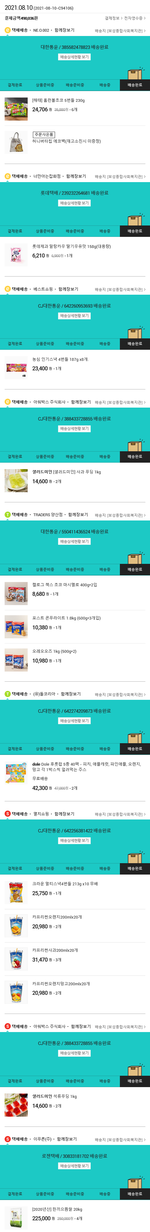 기부자님이 사용한 기부포인트 16,000원, 물품배송비 10,000원, 가격상승분 34원, 100원 미만 지원금 2원, 결제 수수료 11,977원, 기타 사업비는 행복나눔재단이 부담했습니다. (기부후기 발송시점에 최종 업데이트 됩니다.) 실제 쇼핑몰에서 확인되는 배송현황을 캡처한 내용입니다. 실시간 자료와는 차이가 있을 수 있습니다.