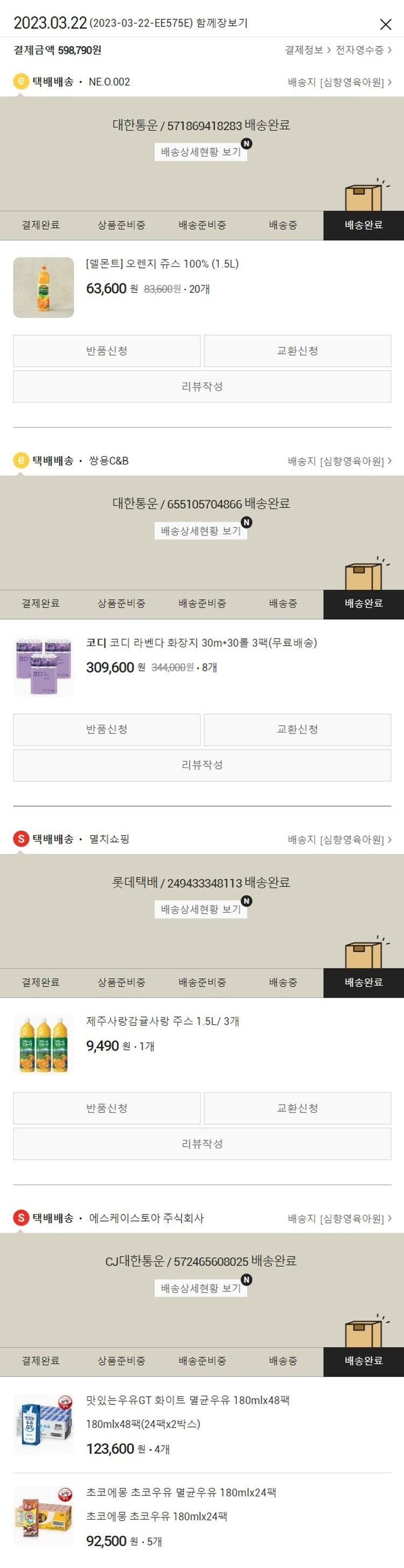 가격상승분 590원, 결제 수수료 11,185원, 기타 사업비는 행복나눔재단이 부담했습니다. (기부후기 발송시점에 최종 업데이트 됩니다.) 실제 쇼핑몰에서 확인되는 배송현황을 캡처한 내용입니다. 실시간 자료와는 차이가 있을 수 있습니다.