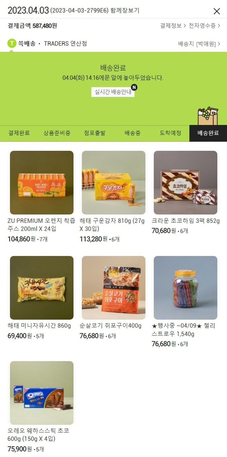 기부자님이 사용한 기부포인트 13,500원, 100원 미만 지원금 80원, 결제 수수료 11,984원, 기타 사업비는 행복나눔재단이 부담했습니다. (기부후기 발송시점에 최종 업데이트 됩니다.) 실제 쇼핑몰에서 확인되는 배송현황을 캡처한 내용입니다. 실시간 자료와는 차이가 있을 수 있습니다.