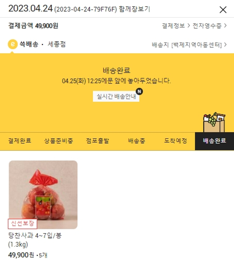 실제 쇼핑몰에서 확인되는 배송현황을 캡처한 내용입니다. 실시간 자료와는 차이가 있을 수 있습니다.