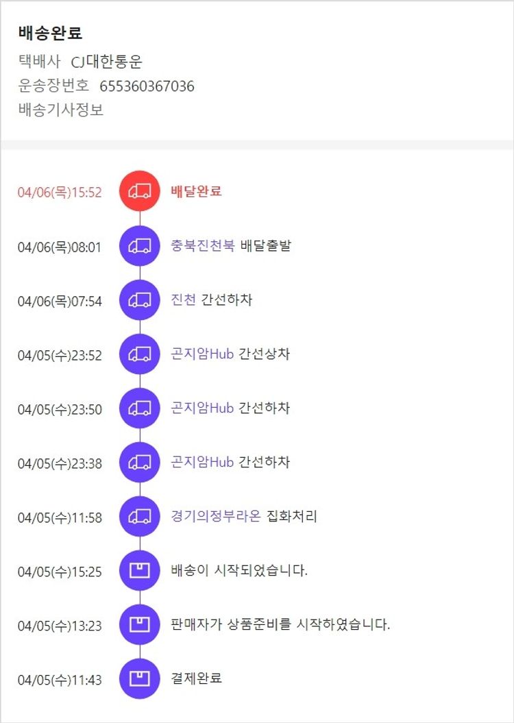 기부자님이 사용한 기부포인트 38,100원, 물품배송비 3,000원, 가격상승분 1,385원, 100원 미만 지원금 40원, 결제 수수료 12,079원, 기타 사업비는 행복나눔재단이 부담했습니다. (기부후기 발송시점에 최종 업데이트 됩니다.) 실제 쇼핑몰에서 확인되는 배송현황을 캡처한 내용입니다. 실시간 자료와는 차이가 있을 수 있습니다.