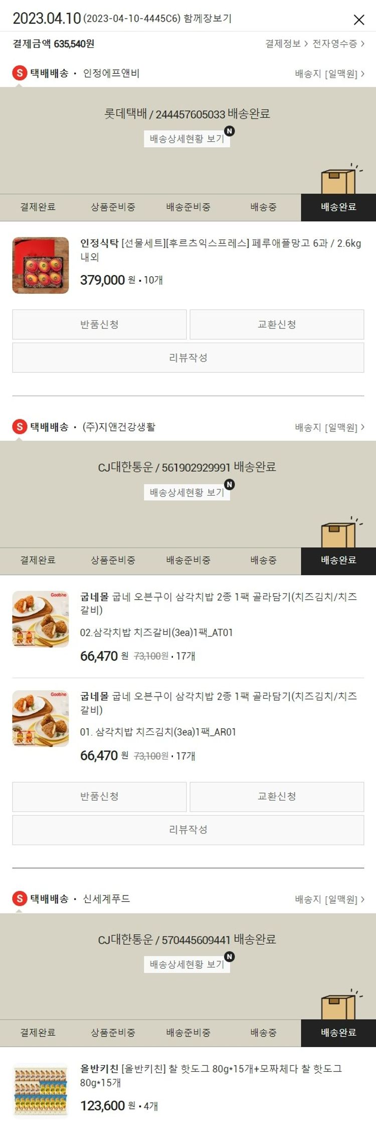 가격상승분 2,940원, 결제 수수료 16,173원, 기타 사업비는 행복나눔재단이 부담했습니다. (기부후기 발송시점에 최종 업데이트 됩니다.) 실제 쇼핑몰에서 확인되는 배송현황을 캡처한 내용입니다. 실시간 자료와는 차이가 있을 수 있습니다.
