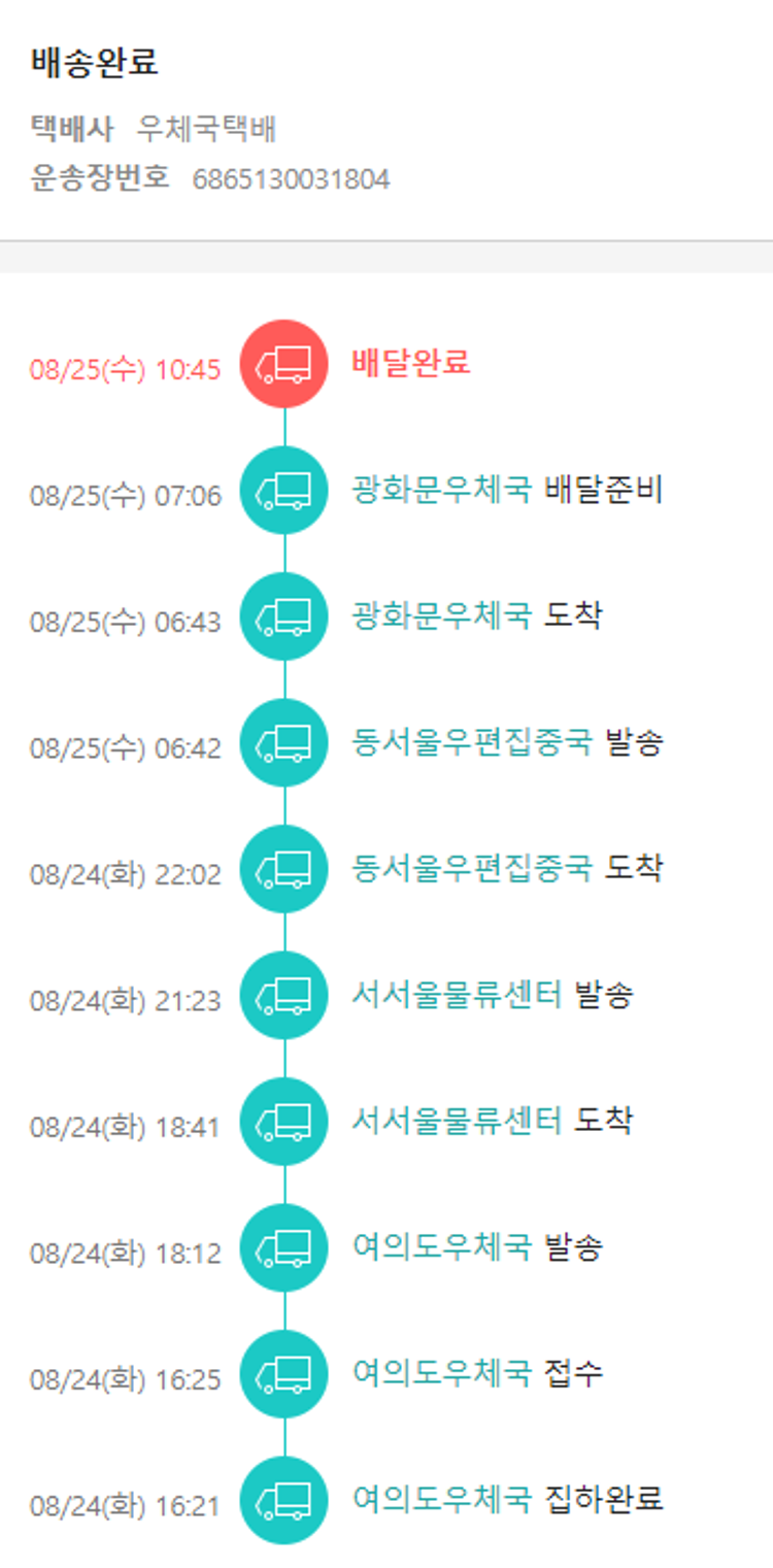 기부자님이 사용한 기부포인트 22,000원, 100원 미만 지원금 25원, 결제 수수료 8,903원, 기타 사업비는 행복나눔재단이 부담했습니다. (기부후기 발송시점에 최종 업데이트 됩니다.) 실제 쇼핑몰에서 확인되는 배송현황을 캡처한 내용입니다. 실시간 자료와는 차이가 있을 수 있습니다.