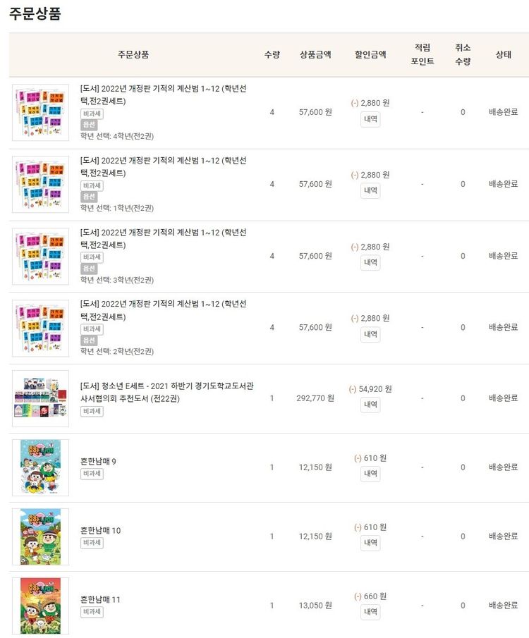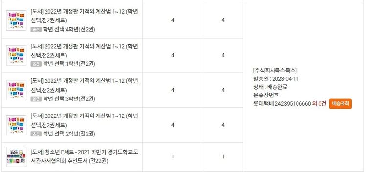 [도서] 2022년 개정판 기적의 계산법 1~12 (학년선택,전2권세트)4개 (개당 13,680원)