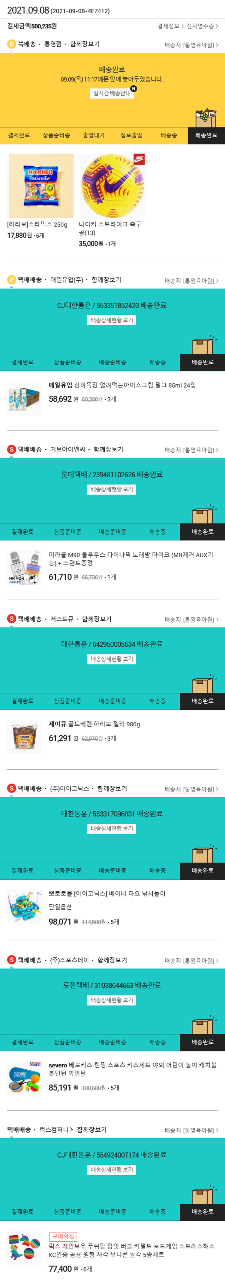 기부자님이 사용한 기부포인트 45,950원, 물품배송비 5,000원, 가격상승분 2,838원, 100원 미만 지원금 97원, 결제 수수료 12,335원, 기타 사업비는 행복나눔재단이 부담했습니다. (기부후기 발송시점에 최종 업데이트 됩니다.) 실제 쇼핑몰에서 확인되는 배송현황을 캡처한 내용입니다. 실시간 자료와는 차이가 있을 수 있습니다.