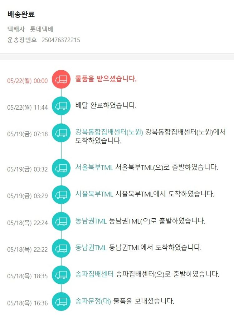 실제 쇼핑몰에서 확인되는 배송현황을 캡처한 내용입니다. 실시간 자료와는 차이가 있을 수 있습니다.