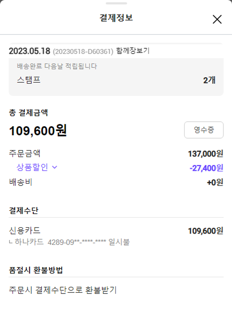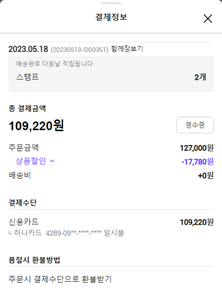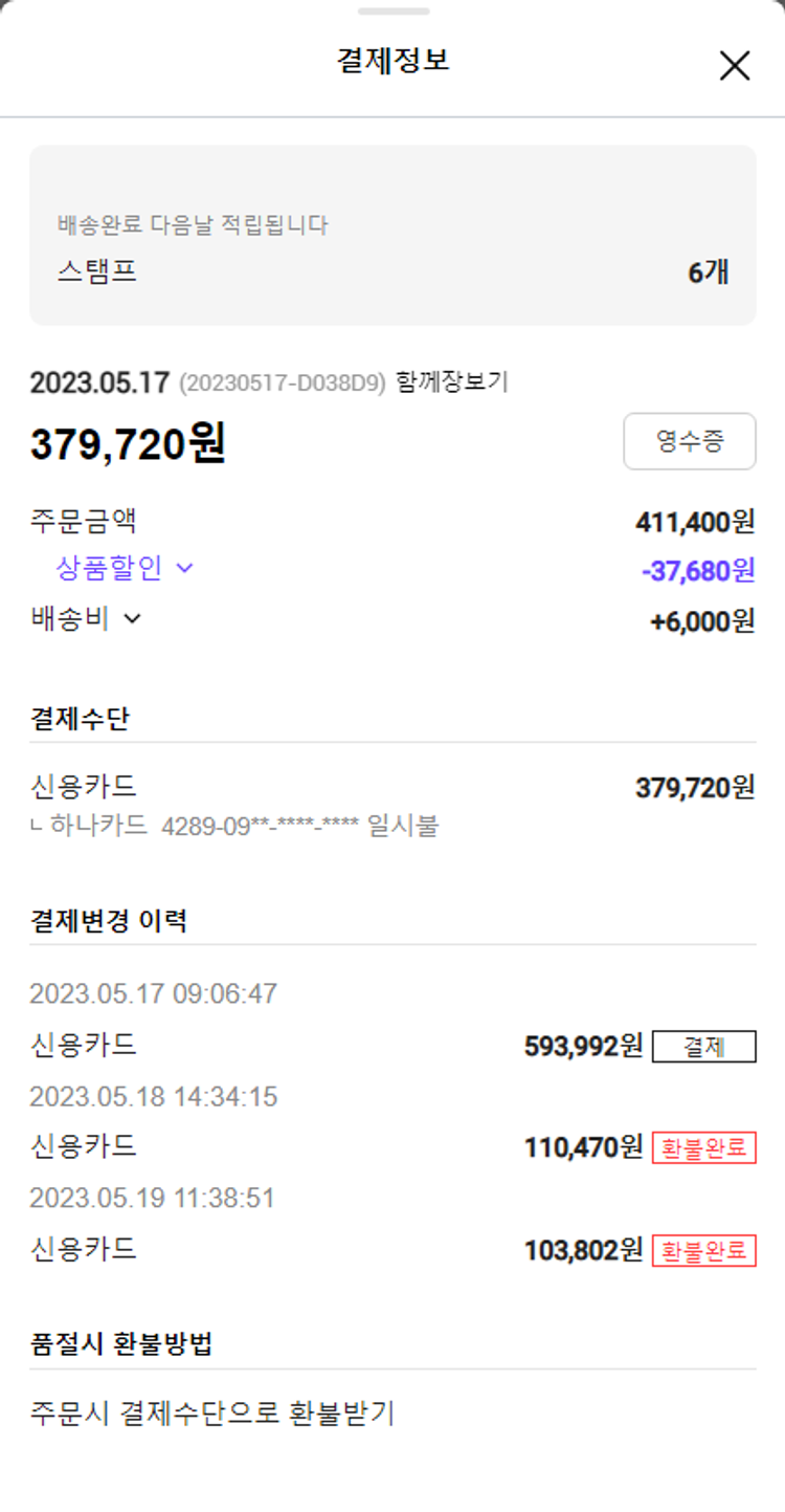 주문 건 중 품절 건 발생하여 2023. 05. 19. 재주문하였습니다.