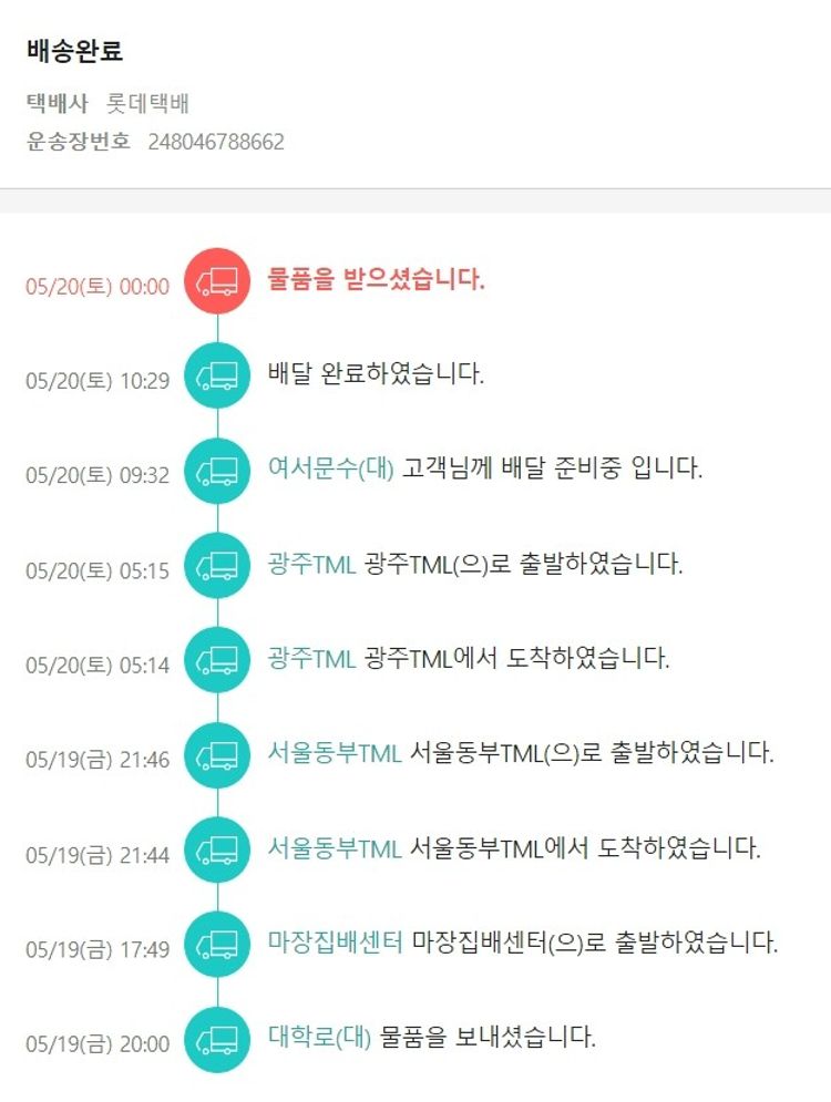 실제 쇼핑몰에서 확인되는 배송현황을 캡처한 내용입니다. 실시간 자료와는 차이가 있을 수 있습니다.