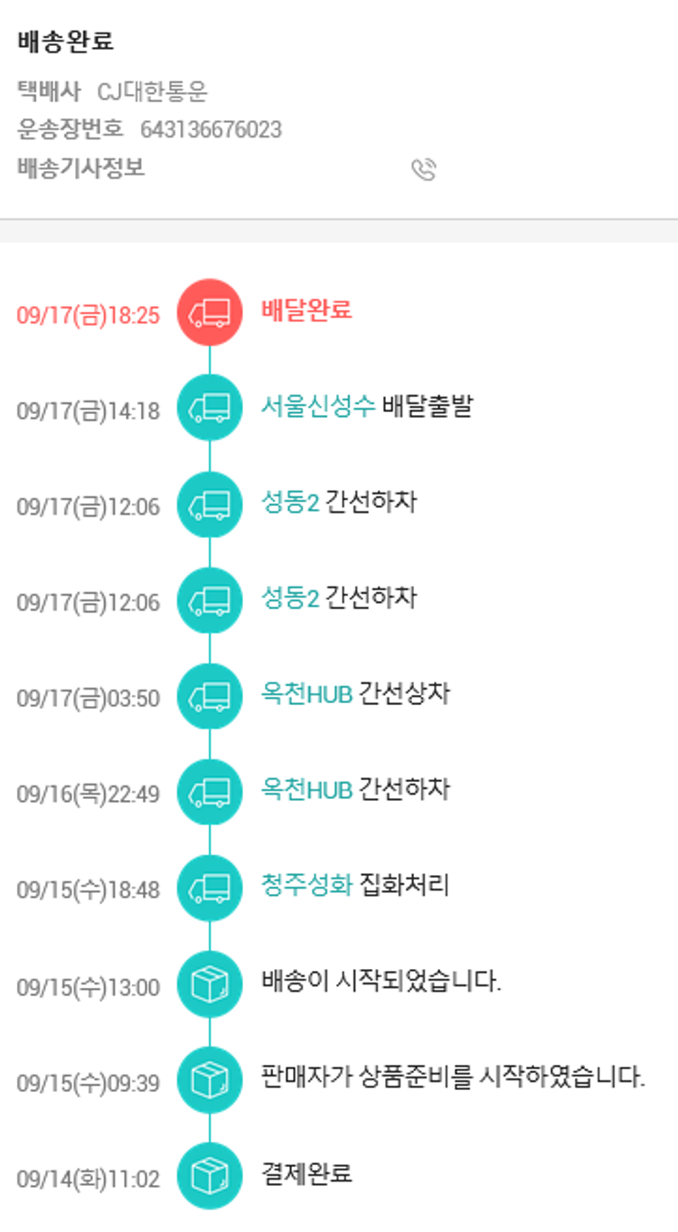 기부자님이 사용한 기부포인트 40,500원, 물품배송비 11,500원, 가격상승분 1,639원, 100원 미만 지원금 27원, 결제 수수료 11,824원, 기타 사업비는 행복나눔재단이 부담했습니다. (기부후기 발송시점에 최종 업데이트 됩니다.) 실제 쇼핑몰에서 확인되는 배송현황을 캡처한 내용입니다. 실시간 자료와는 차이가 있을 수 있습니다.