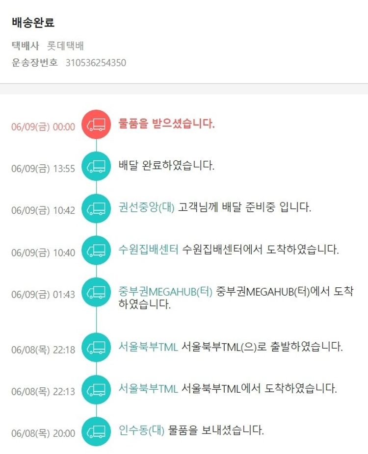 실제 쇼핑몰에서 확인되는 배송현황을 캡처한 내용입니다. 실시간 자료와는 차이가 있을 수 있습니다.