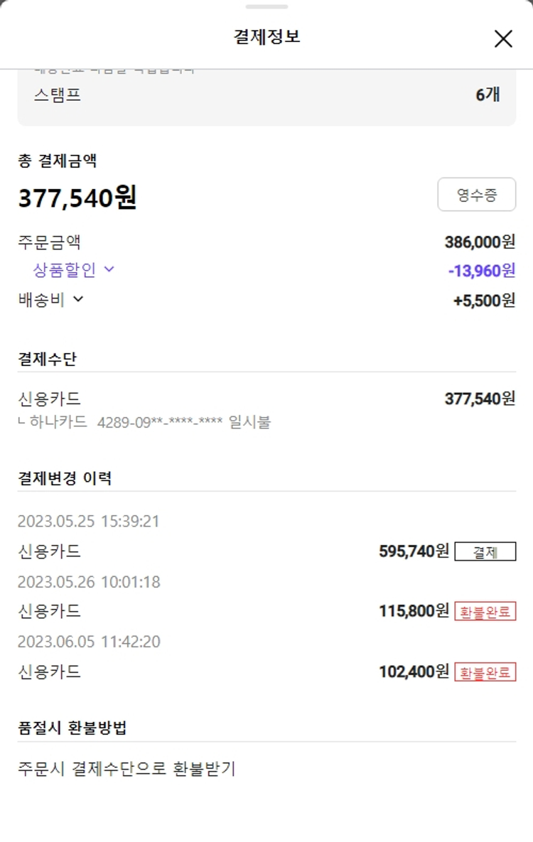 주문 건 중 품절 건 2023. 06. 07. 재주문되었습니다.