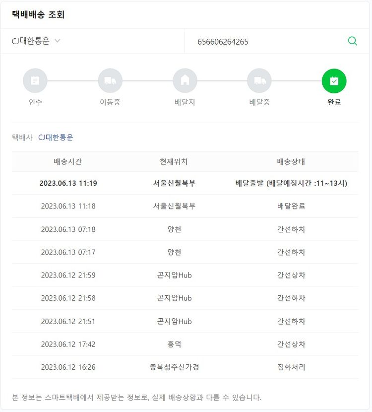 기부자님이 사용한 기부포인트 24,500원, 물품배송비 3,000원, 가격상승분 800원, 100원 미만 지원금 56원, 결제 수수료 10,399원, 기타 사업비는 행복나눔재단이 부담했습니다. (기부후기 발송시점에 최종 업데이트 됩니다.) 주문 건 중 품절 건 발생하여 2023. 06. 09. 재주문하였습니다. 실제 쇼핑몰에서 확인되는 배송현황을 캡처한 내용입니다. 실시간 자료와는 차이가 있을 수 있습니다.