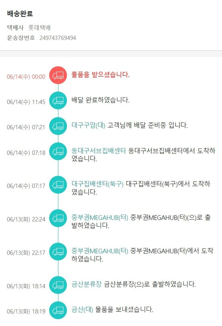 기부자님이 사용한 기부포인트 3,000원, 물품배송비 3,500원, 가격상승분 20원, 100원 미만 지원금 21원, 결제 수수료 16,776원, 기타 사업비는 행복나눔재단이 부담했습니다. (기부후기 발송시점에 최종 업데이트 됩니다.) 실제 쇼핑몰에서 확인되는 배송현황을 캡처한 내용입니다. 실시간 자료와는 차이가 있을 수 있습니다.