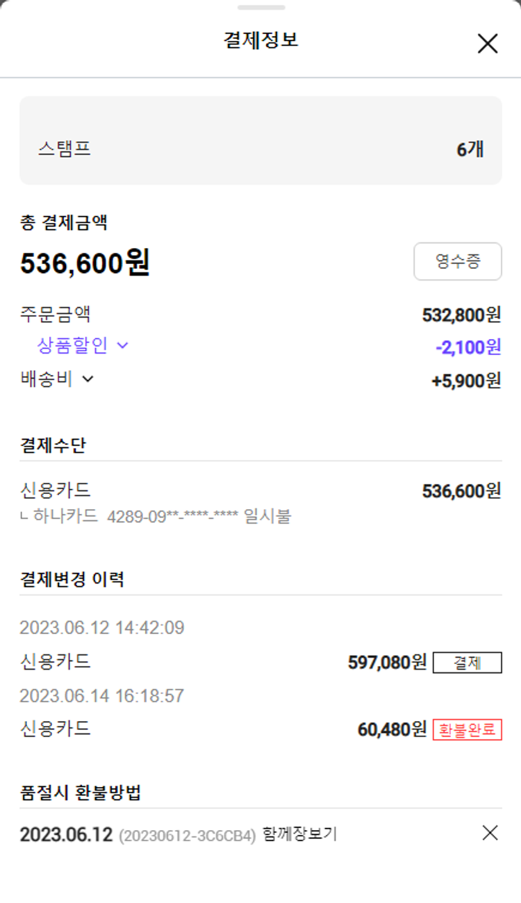 기부자님이 사용한 기부포인트 5,550원, 물품배송비 5,900원, 가격상승분 344원, 결제 수수료 14,606원, 기타 사업비는 행복나눔재단이 부담했습니다. (기부후기 발송시점에 최종 업데이트 됩니다.) 주문 건 중 품절 건 발생하여 2023. 06. 15. 재주문하였습니다. 실제 쇼핑몰에서 확인되는 배송현황을 캡처한 내용입니다. 실시간 자료와는 차이가 있을 수 있습니다.