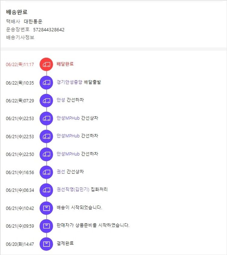 기부자님이 사용한 기부포인트 119,150원, 물품배송비 3,000원, 가격상승분 1,555원, 100원 미만 지원금 9원, 결제 수수료 11,569원, 기타 사업비는 행복나눔재단이 부담했습니다. (기부후기 발송시점에 최종 업데이트 됩니다.) 주문 건 중 품절 건 발생하여 2023. 06. 20. 재주문하였습니다. 실제 쇼핑몰에서 확인되는 배송현황을 캡처한 내용입니다. 실시간 자료와는 차이가 있을 수 있습니다.