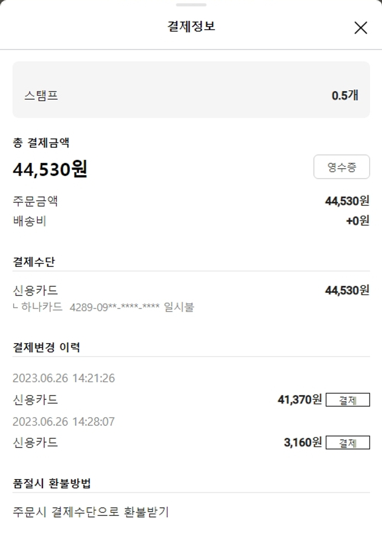 주문 건 중 품절 건 발생하여 2023. 06. 26. 재주문하였습니다.