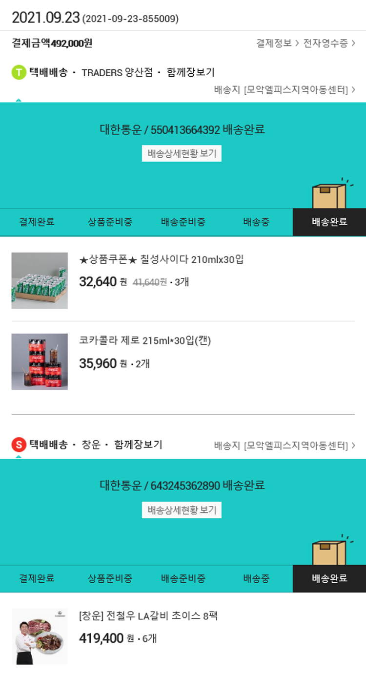 기부자님이 사용한 기부포인트 50,500원, 물품배송비 4,000원, 가격상승분 3,044원, 100원 미만 지원금 56원, 결제 수수료 11,379원, 기타 사업비는 행복나눔재단이 부담했습니다. (기부후기 발송시점에 최종 업데이트 됩니다.) 실제 쇼핑몰에서 확인되는 배송현황을 캡처한 내용입니다. 실시간 자료와는 차이가 있을 수 있습니다.