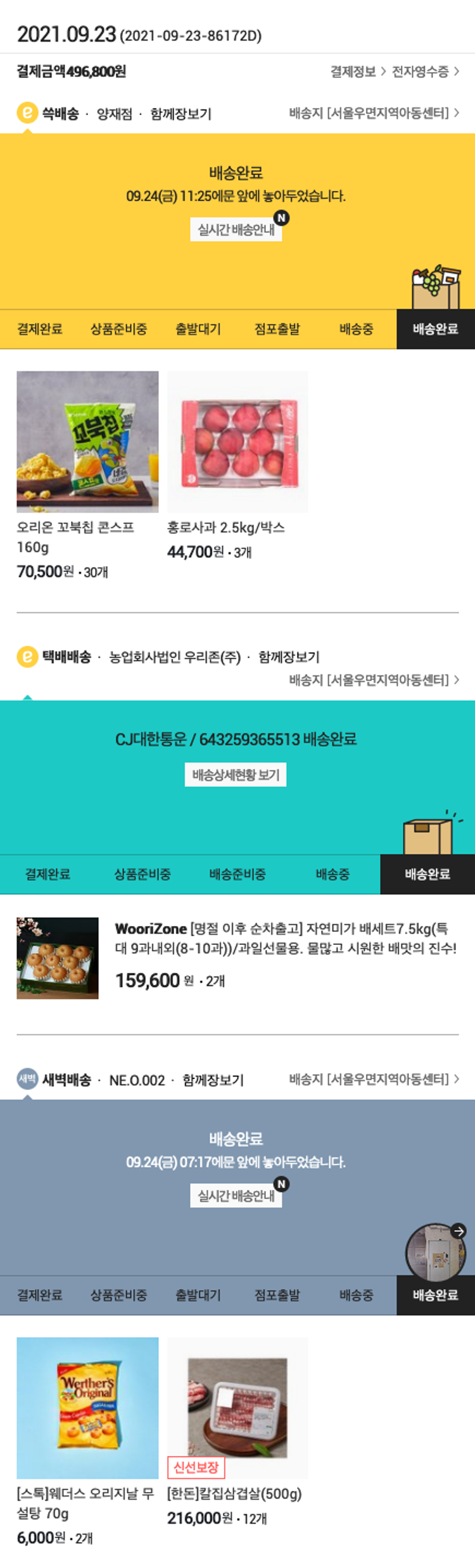 기부자님이 사용한 기부포인트 41,400원, 가격상승분 3,900원, 결제 수수료 11,378원, 기타 사업비는 행복나눔재단이 부담했습니다. (기부후기 발송시점에 최종 업데이트 됩니다.) 실제 쇼핑몰에서 확인되는 배송현황을 캡처한 내용입니다. 실시간 자료와는 차이가 있을 수 있습니다.