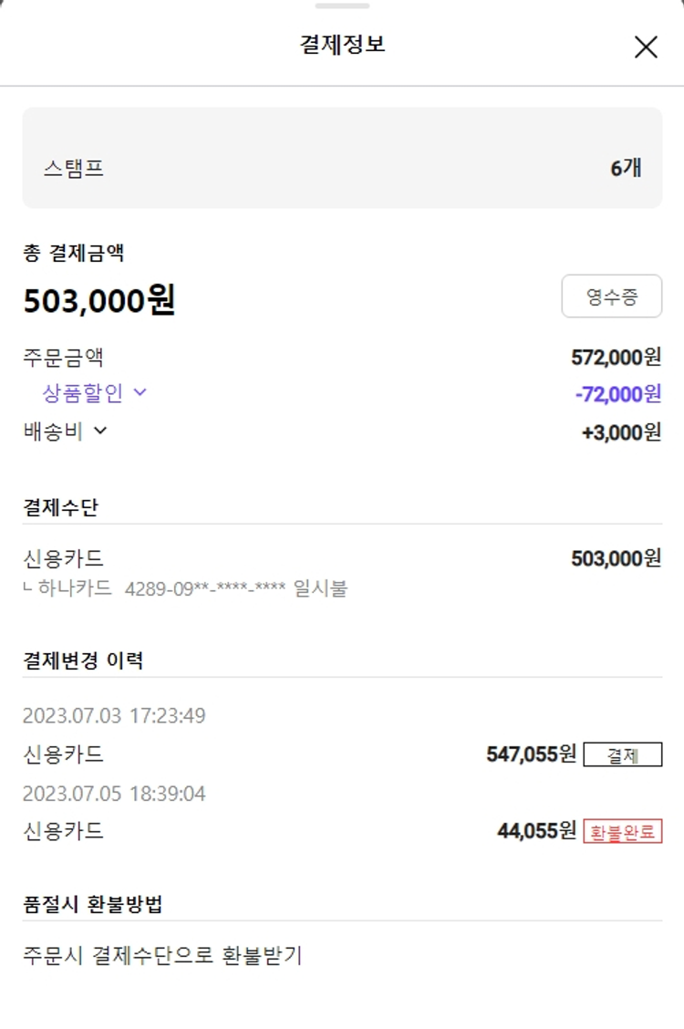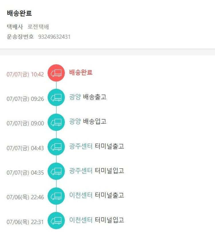 기부자님이 사용한 기부포인트 65,500원, 물품배송비 3,000원, 가격상승분 1,788원, 100원 미만 지원금 67원, 결제 수수료 9,548원, 기타 사업비는 행복나눔재단이 부담했습니다. (기부후기 발송시점에 최종 업데이트 됩니다.) 주문 건 중 품절 건 발생하여 2023. 07. 06. 재주문하였습니다. 실제 쇼핑몰에서 확인되는 배송현황을 캡처한 내용입니다. 실시간 자료와는 차이가 있을 수 있습니다.