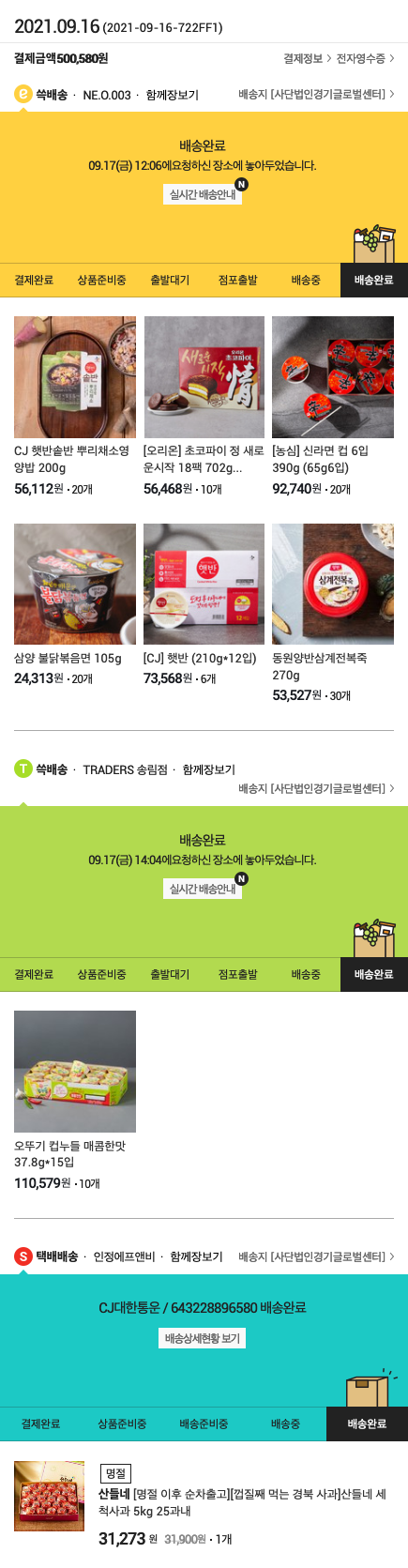 [CJ] 햇반 (210g*12입)6개 (개당 12,508원)