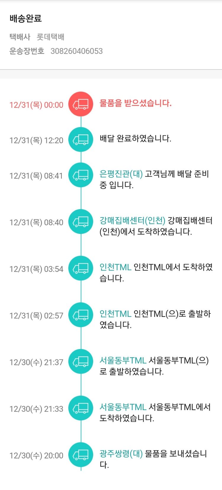 기부자님이 사용한 기부포인트 112,300원, 결제 수수료 13,554원, 기타 사업비는 행복나눔재단이 부담했습니다. (기부후기 발송시점에 최종 업데이트 됩니다.) 실제 쇼핑몰에서 확인되는 배송현황을 캡처한 내용입니다. 실시간 자료와는 차이가 있을 수 있습니다.