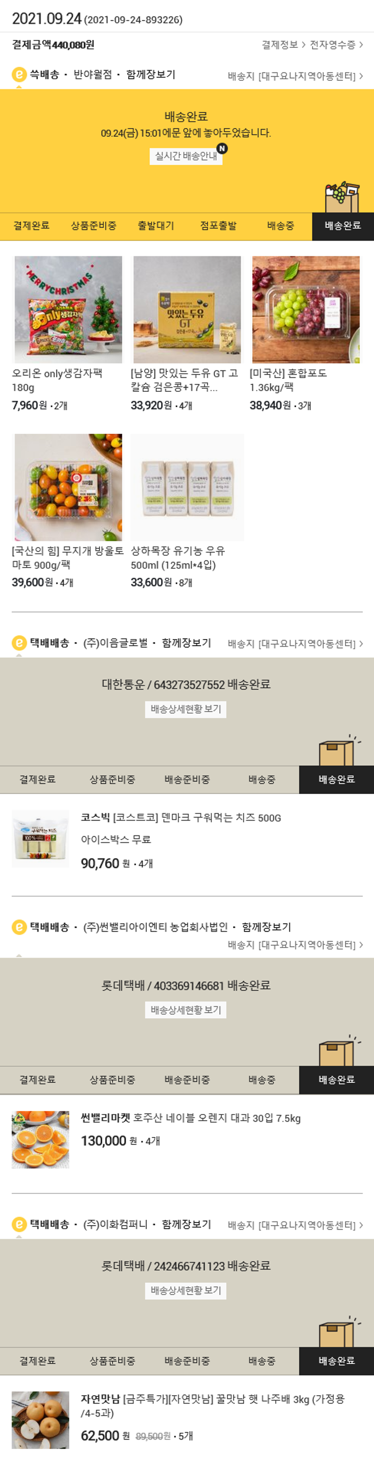 기부자님이 사용한 기부포인트 78,000원, 물품배송비 2,800원, 가격상승분 1,960원, 100원 미만 지원금 20원, 결제 수수료 10,376원, 기타 사업비는 행복나눔재단이 부담했습니다. (기부후기 발송시점에 최종 업데이트 됩니다.) 실제 쇼핑몰에서 확인되는 배송현황을 캡처한 내용입니다. 실시간 자료와는 차이가 있을 수 있습니다.