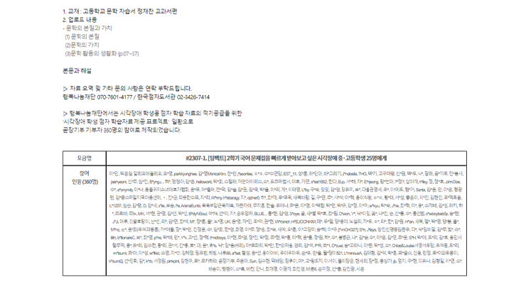 이번 2023년도 2학기 국어 문제집으로는 아래 3종이 선정되었습니다.