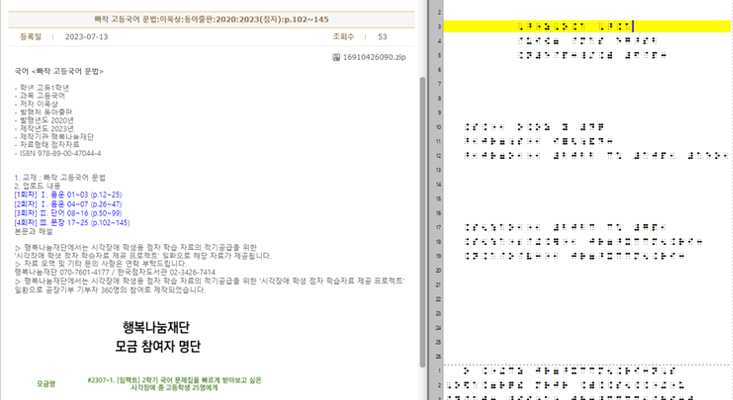시각장애 학생이 학기 전에 점자자료를 요청해도 제때 받을 수 없어 학습에 어려움을 겪고 있습니다.